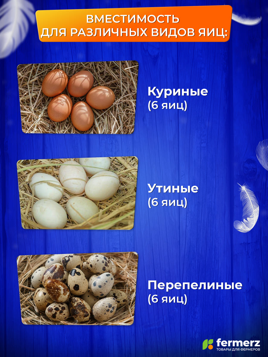Компактный бытовой инкубатор на 6 куриных яиц предназначен для вывода небольших партий молодняка в домашних условиях. Отличный вариант для начинающих птицеводов и для выведения редких или ценных пород без лишних затрат.