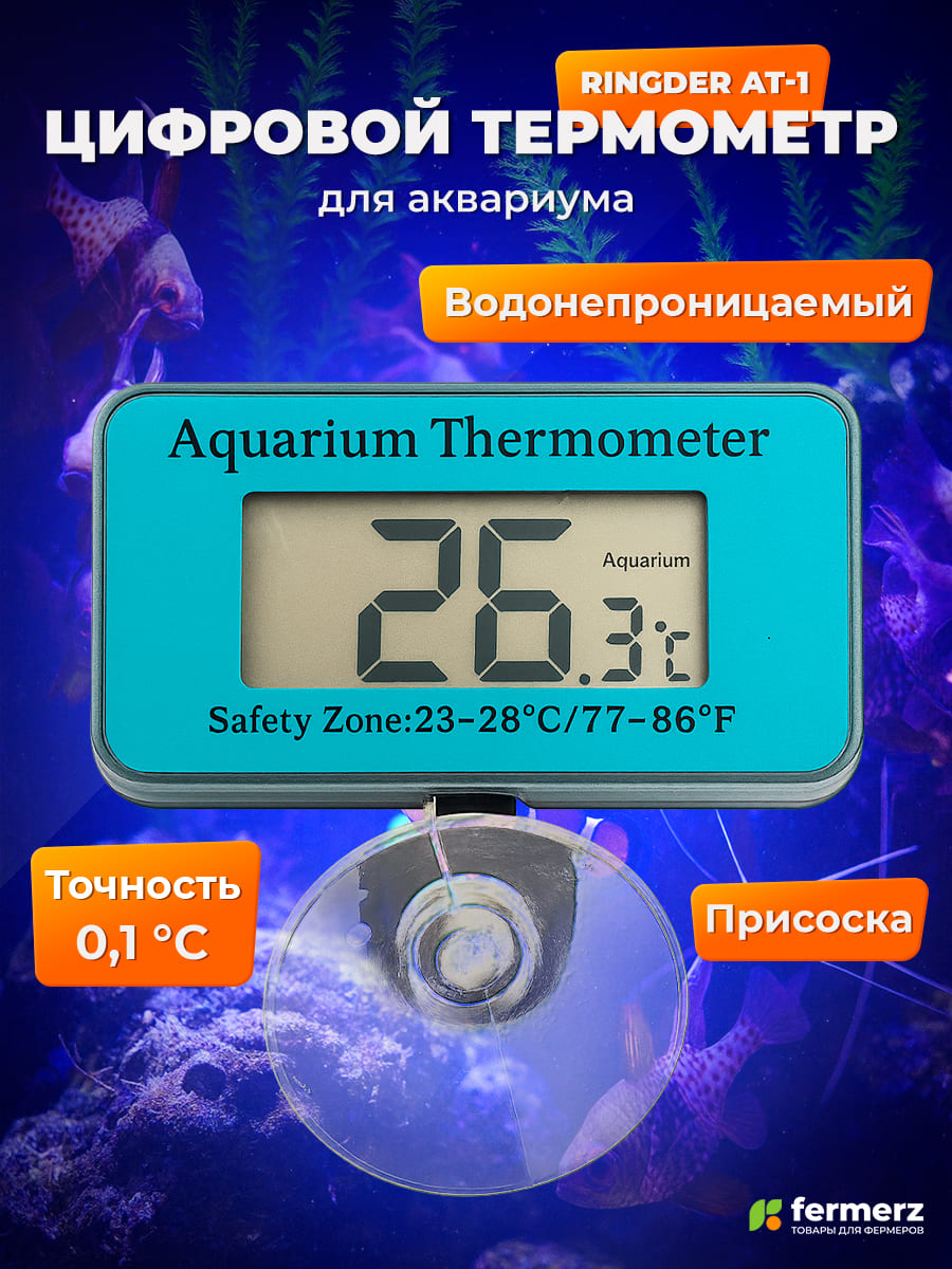 Поддержание стабильной температуры — ключ к здоровью обитателей аквариума. Термометр для аквариума RINGDER AT-1 — это надёжный и точный цифровой термометр для воды, созданный специально для владельцев аквариумов, которые заботятся о благополучии своих водных питомцев.