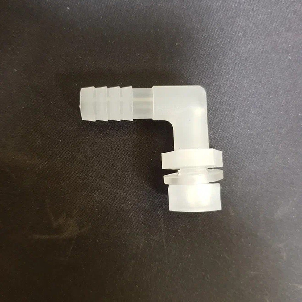 Угловой штуцер (ёлочка) 10 мм с наружной резьбой М10 — оптимален для экономии пространства и аккуратной прокладки шлангов под углом 90°;