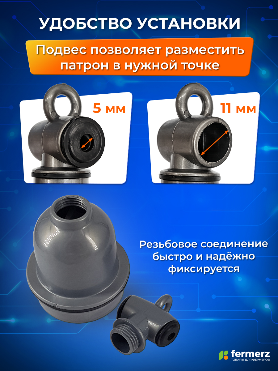 Керамический патрон с цоколем е27. Благодаря алюминиевому корпусу и встроенному водонепроницаемому резиновому кольцу, патрон защищен от воздействия влаги и высоких температур, что обеспечивает его надежность и долговечность.