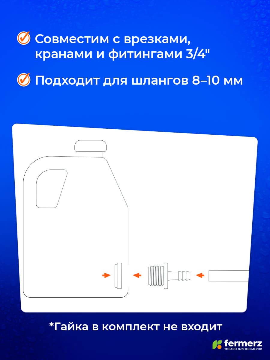 Подходит для шланга с внутренним диаметром 8–10 мм
