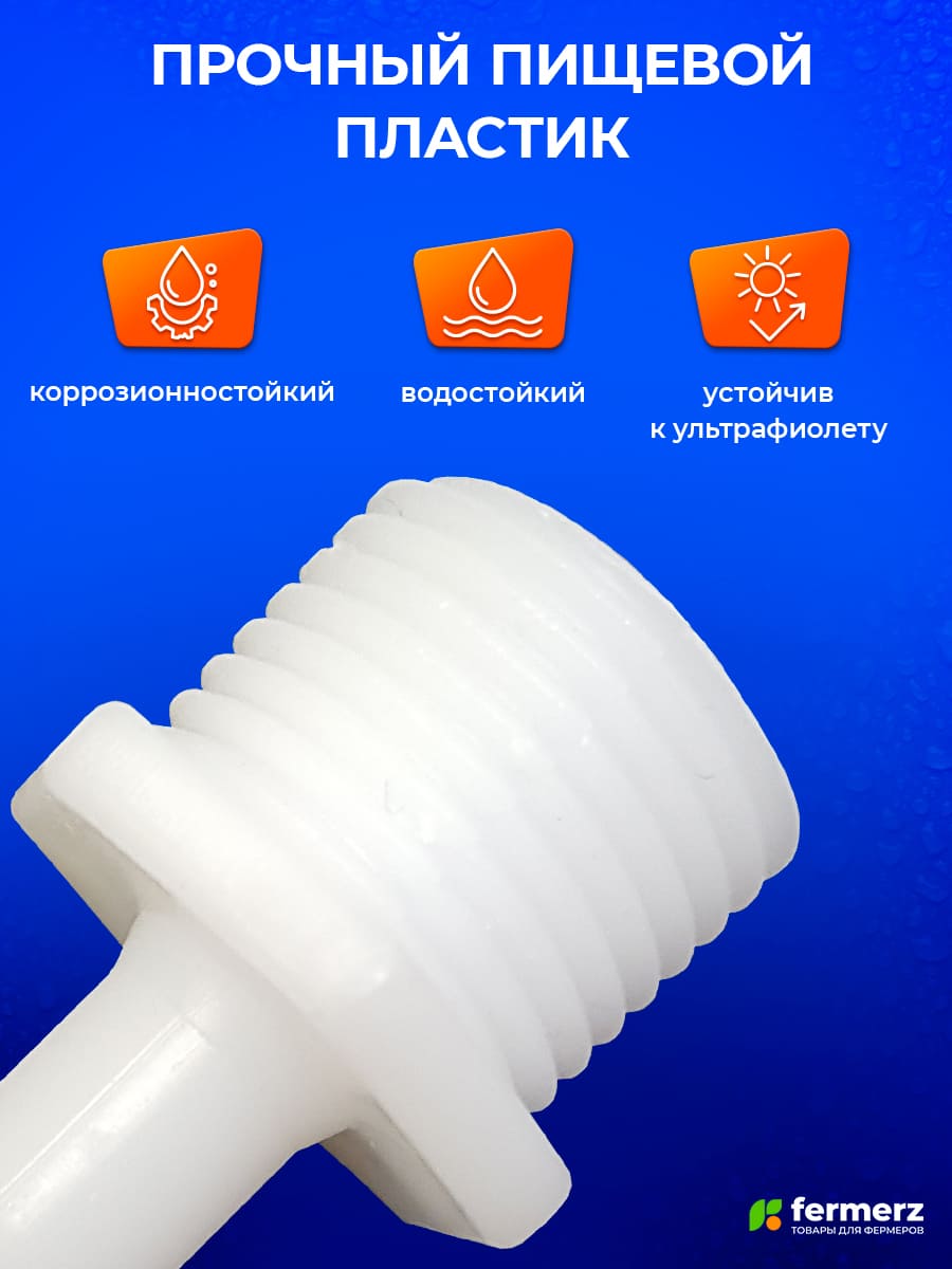 Штуцер пластиковый 1/2 елочка — простой и надёжный способ организовать герметичное подключение. Незаменим при сборке поилок, поливных систем и любых самодельных решений, где важны компактность и надёжность соединений.